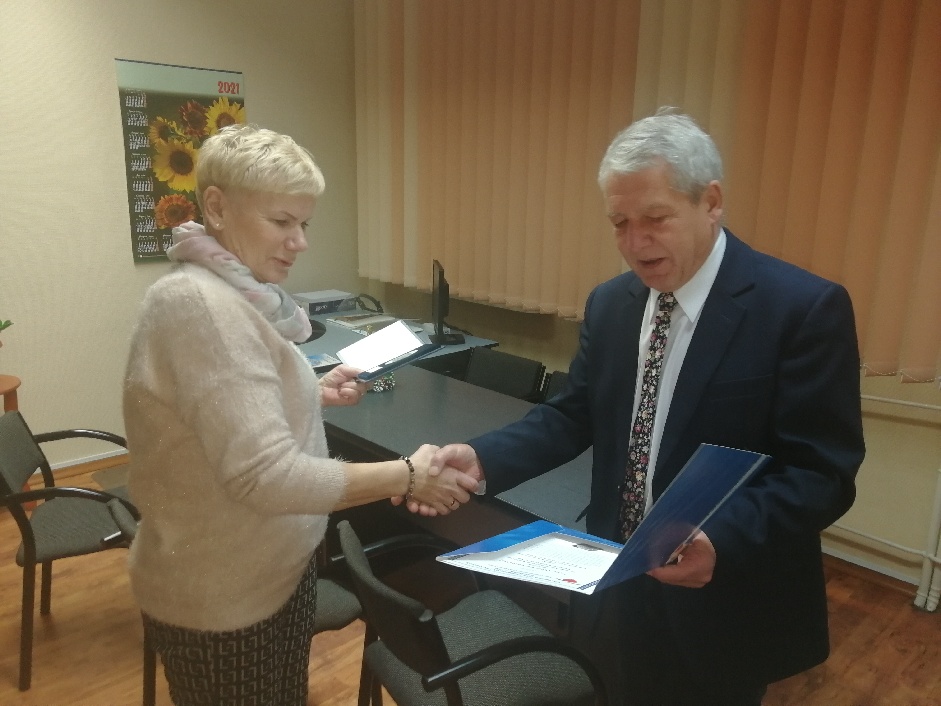 Wyróżnienie, na ręce Pani Dyrektor Aliny Czerwińskiej, zostało wręczone przez Pana Marcina Michlewicza, Przewodniczącego Okręgowej Izby Pielęgniarek i Położnych z siedzibą w Pile, którego mieliśmy zaszczyt gościć w naszej siedzibie.